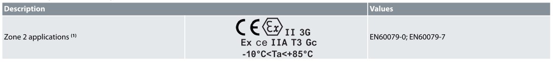 (1)When used in ATEX Zone 2 areas at low temperatures the cable and plug must be protected against impact.